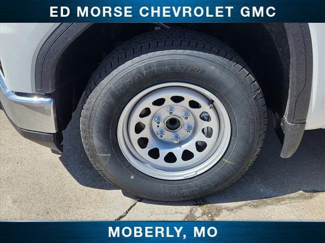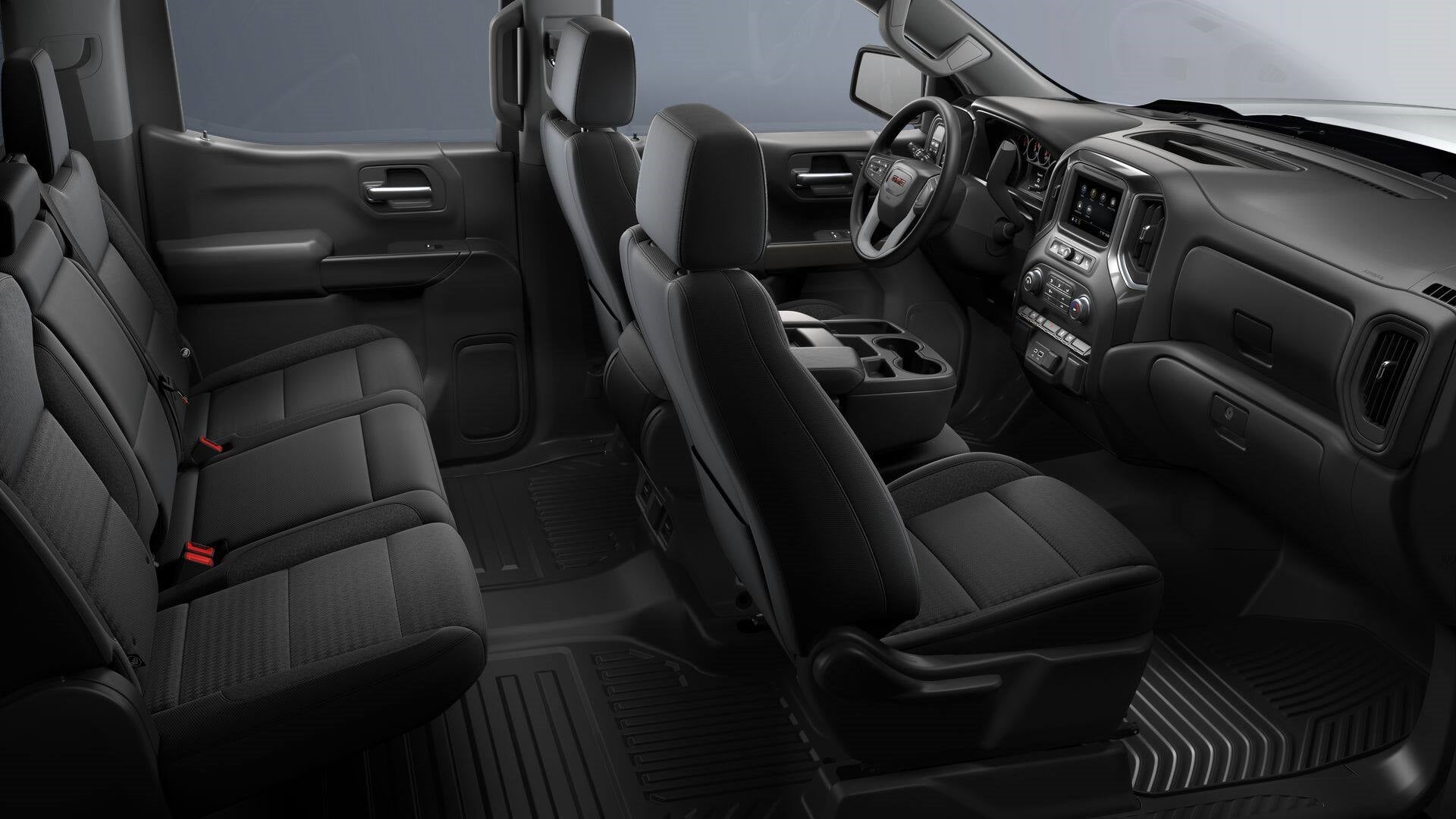 Equipped with Convenience Package (Cruise Control, Deep-Tinted Glass, Electric Rear-Window Defogger, EZ Lift Power Lock & Release Tailgate, Heated Power-Adjustable Outside Mirrors, and LED Cargo Area Lighting), Preferred Equipment Group 1SA (2 Charge/Data USB Ports, 220 Amp Alternator, Chrome Header w/Flat Black Grille Insert Bars, GMC Connected Access Capable, HD Rear Vision Camera, OnStar & GMC Connected Services Capable, Power Door Locks, Power Front Windows w/Driver Express Up/Down, Power Front Windows w/Passenger Express Down, Power Rear Windows w/Express Down, Push Button Start, Remote Keyless Entry, Solar Absorbing Tinted Glass, and Wi-Fi Hotspot Capable), Standard Suspension Package, 10-Way Power Driver Seat Adjuster w/Lumbar, 120-Volt Bed Mounted Power Outlet, 120-Volt Interior Power Outlet, 2 Type-C Charge-Only Rear USB Ports, 3.42 Rear Axle Ratio, 4-Way Manual Driver Seat Adjuster, 4-Way Manual Passenger Seat Adjuster, 4-Wheel Disc Brakes, 6 Speakers, 6-Speaker Audio System Feature, ABS brakes, Air Conditioning, AM/FM radio, Apple CarPlay/Android Auto, Auto High-beam Headlights, Automatic Emergency Braking, Brake assist, Buckle to Drive, Bumpers: chrome, Compass, Delay-off headlights, Driver door bin, Dual front impact airbags, Dual front side impact airbags, Electronic Stability Control, Following Distance Indicator, Forward Collision Alert, Front 40/20/40 Split-Bench Seat, Front anti-roll bar, Front Center Armrest w/Storage, Front License Plate Kit, Front Pedestrian Braking, Front reading lights, Front wheel independent suspension, Fully automatic headlights, Illuminated entry, IntelliBeam Automatic High Beam On/Off, Lane Keep Assist w/Lane Departure Warning, Low tire pressure warning, Occupant sensing airbag, Outside temperature display, Overhead airbag, Overhead console, Panic alarm, Passenger door bin, Passenger vanity mirror, Power steering, Power windows, Premium audio system: GMC Infotainment System, Radio data system, Radio: GMC Infotainment Audio System, Rear reading lights, Rear step bumper, Remote keyless entry, Speed-sensing steering, Split folding rear seat, Tachometer, Tilt steering wheel, Traction control, Trip computer, Variably intermittent wipers, Vinyl Seat Trim, Voltmeter, Wheels: 17" x 8" Silver Painted Steel, and Wireless Apple CarPlay/Wireless Android Auto.