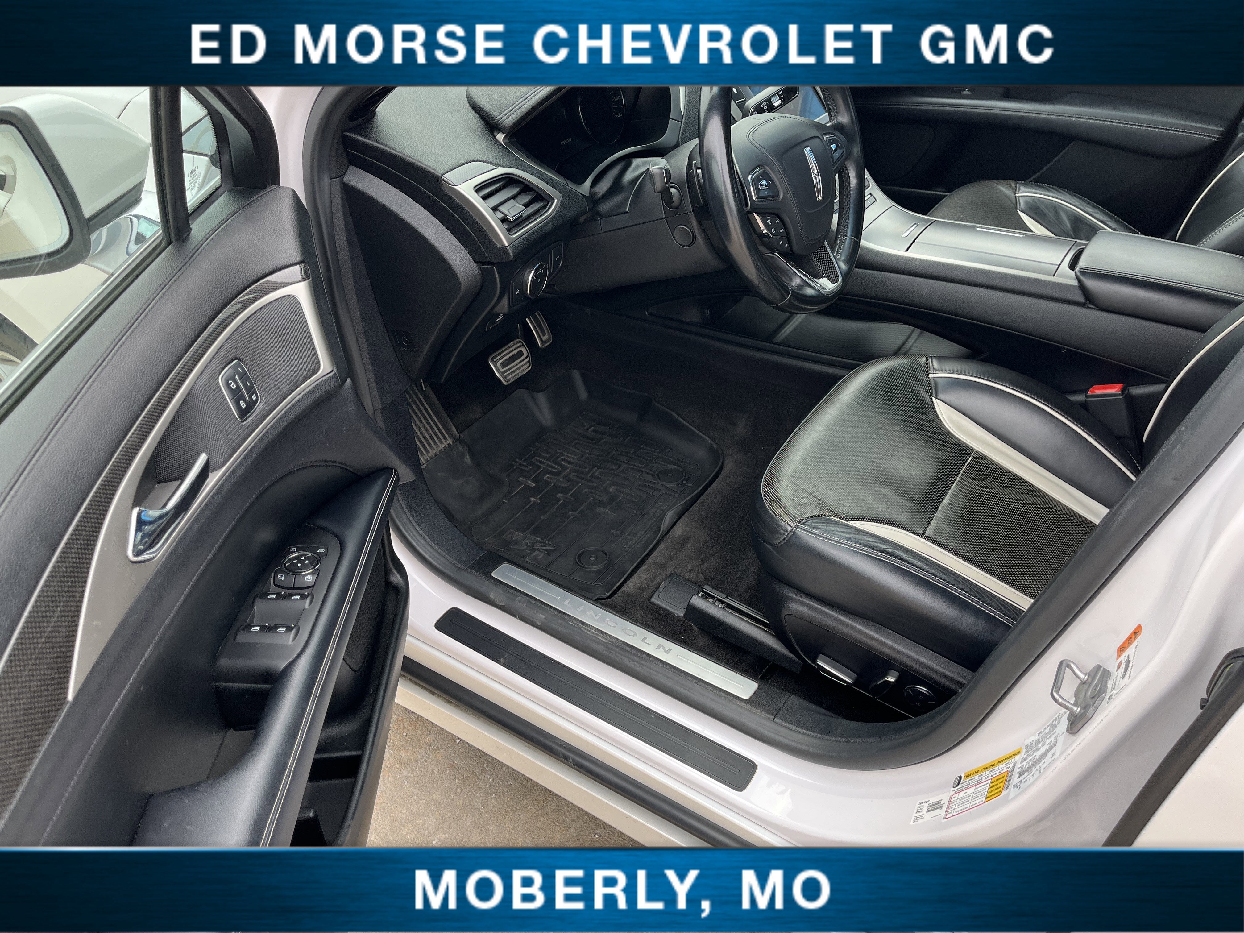 Equipped with Climate Package (Auto High Beams, Heated Rear-Seats, Heated Steering Wheel, Rain Sensing Wipers, and Windshield Wiper De-Icer), Drivers Package (Aluminum Foot Pedal Cover, Dynamic Torque Vectoring, Interior Trim Accent Pack, Multi-Contour Front Seats w/Active Motion, Painted Brake Calipers, Painted Upper Grille, Prem Leather-Trimmed Micro-Perf Heated/Cooled (E), Sport Tuned Suspension, and Wheels: 19" Fully Polished 10-Spoke Aluminum), Equipment Group 300A, 11 Speakers, 4-Wheel Disc Brakes, ABS brakes, Adaptive suspension, Air Conditioning, All-Weather Floor Mats, Alloy wheels, AM/FM radio: SiriusXM, Auto tilt-away steering wheel, Auto-dimming door mirrors, Auto-dimming Rear-View mirror, Automatic temperature control, Brake assist, Bumpers: body-color, CD player, Compass, Delay-off headlights, Driver door bin, Driver vanity mirror, Dual front impact airbags, Dual front side impact airbags, Electronic Stability Control, Emergency communication system: SYNC 3 911 Assist, Exterior Parking Camera Rear, Four wheel independent suspension, Front anti-roll bar, Front Bucket Seats, Front Center Armrest, Front dual zone A/C, Front reading lights, Fully automatic headlights, Garage door transmitter, Genuine wood dashboard insert, Genuine wood door panel insert, Heated door mirrors, Heated front seats, High-Intensity Discharge Headlights, Illuminated entry, Knee airbag, Leather steering wheel, Low tire pressure warning, Memory seat, Navigation System, Occupant sensing airbag, Outside temperature display, Overhead airbag, Overhead console, Panic alarm, Passenger door bin, Passenger vanity mirror, Power door mirrors, Power driver seat, Power passenger seat, Power steering, Power windows, Prem Leather-Trimmed Micro-Perf Heated/Cooled (G), Radio data system, Radio: Lincoln Premium Sound System w/Single CD, Rear anti-roll bar, Rear Parking Sensors, Rear reading lights, Rear seat center armrest, Rear window defroster, Remote keyless entry, Security system, Speed control, Speed-sensing steering, Speed-Sensitive Wipers, Split folding rear seat, Steering wheel memory, Steering wheel mounted audio controls, SYNC 3, Tachometer, Telescoping steering wheel, Tilt steering wheel, Traction control, Trip computer, Turn signal indicator mirrors, Variably intermittent wipers, Ventilated front seats, and Wheels: 19" Magnetic Painted Machined-Aluminum.