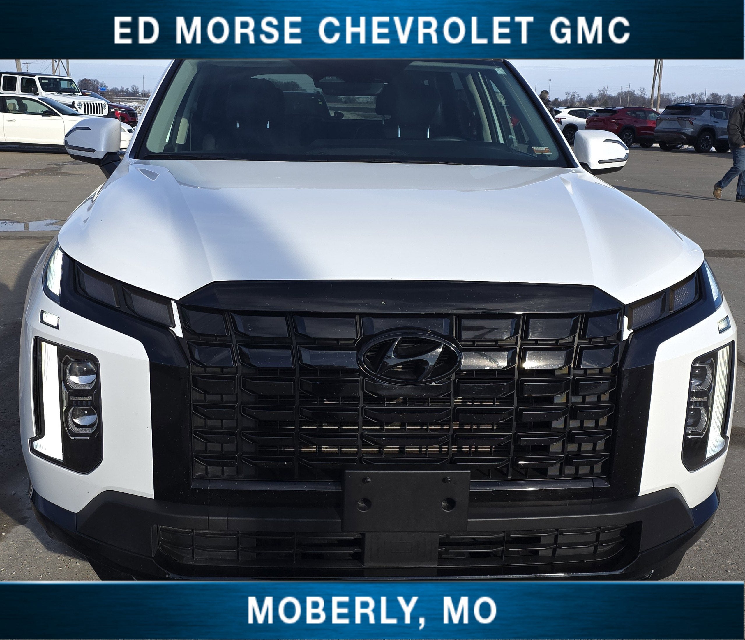 Equipped with Option Group 01, Palisade XRT, 4D Sport Utility, V6, 8-Speed Automatic with SHIFTRONIC, AWD, Hyper White, Black Artificial Leather, 3.648 Axle Ratio, 3rd row seats: split-bench, 4-Wheel Disc Brakes, 6 Speakers, ABS brakes, Air Conditioning, All-Season Fitted Liners, Alloy wheels, AM/FM radio: SiriusXM, Apple CarPlay & Android Auto, Auto High-beam Headlights, Auto-dimming door mirrors, Auto-dimming Rear-View mirror, Auto-leveling suspension, Automatic temperature control, Brake assist, Bumper Applique, Bumpers: body-color, Cargo Net, Carpeted Floor Mats, Delay-off headlights, Driver door bin, Driver vanity mirror, Dual front impact airbags, Dual front side impact airbags, Electronic Stability Control, Emergency communication system, Exterior Parking Camera Rear, First Aid Kit, Four wheel independent suspension, Front anti-roll bar, Front Bucket Seats, Front Center Armrest, Front dual zone A/C, Front reading lights, Fully automatic headlights, H-Tex Leatherette Seat Trim, Heated door mirrors, Heated Front Bucket Seats, Heated front seats, Illuminated entry, Knee airbag, Low tire pressure warning, Navigation System, Occupant sensing airbag, Outside temperature display, Overhead airbag, Overhead console, Panic alarm, Passenger door bin, Passenger vanity mirror, Power door mirrors, Power driver seat, Power Liftgate, Power moonroof, Power passenger seat, Power steering, Power windows, Radio data system, Radio: AM/FM/MP3 Audio System, Rear air conditioning, Rear anti-roll bar, Rear audio controls, Rear reading lights, Rear side impact airbag, Rear window defroster, Rear window wiper, Reclining 3rd row seat, Remote keyless entry, Roof rack, Security system, Speed control, Speed-sensing steering, Split folding rear seat, Spoiler, Steering wheel mounted audio controls, Tachometer, Telescoping steering wheel, Tilt steering wheel, Traction control, Trip computer, Turn signal indicator mirrors, Variably intermittent wipers, Wheel Locks, and Wheels: 20" x 7.5J Dark Alloy w/Rugged Styling.